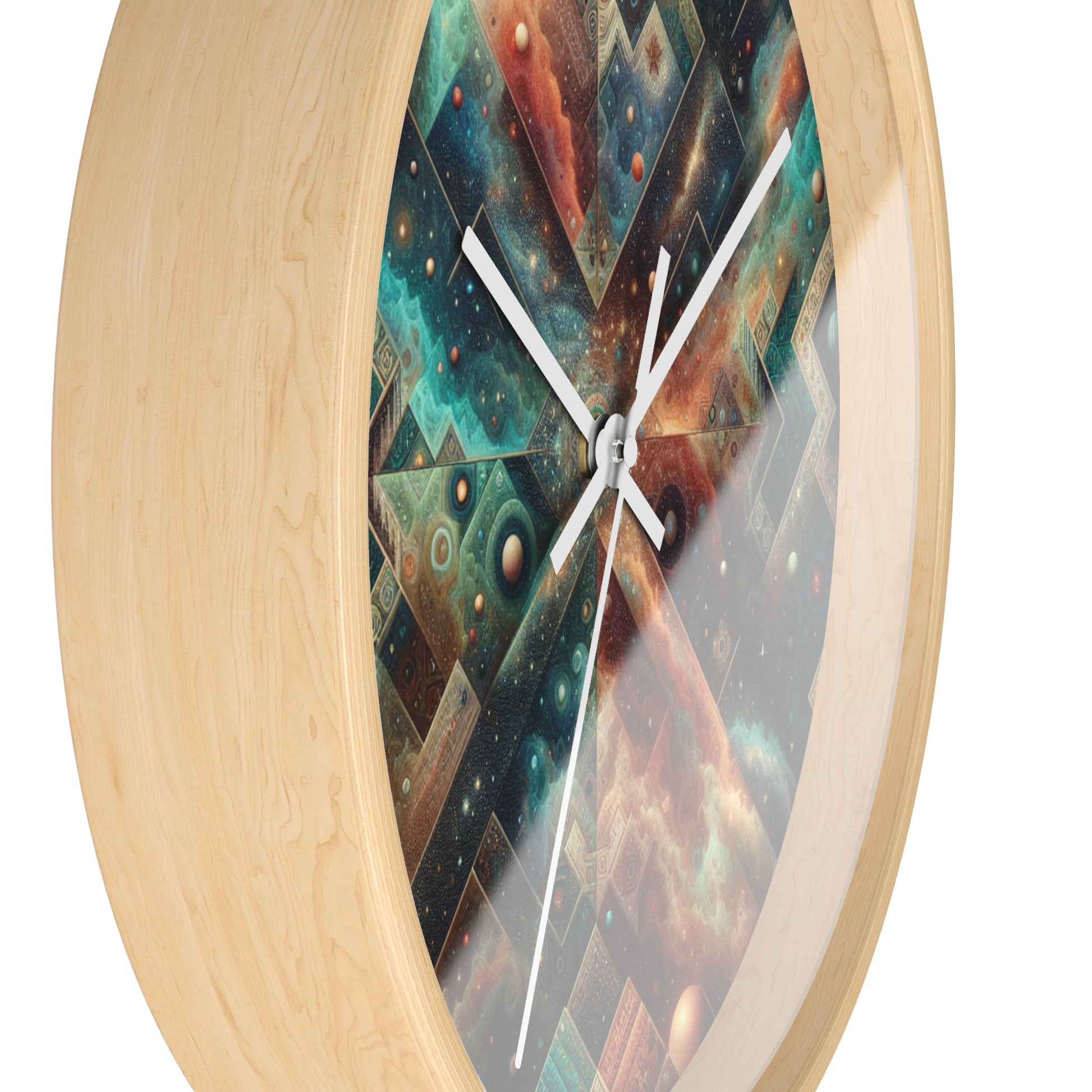 Immerse yourself in cosmic wonder with our stunning wall clock. Covered in a tapestry of intricate turquoise and earthy hues, it offers a complex panorama of stars, galaxies, nebulae and planets. Southwestern Chevron lines interweave throughout, delivering a celestial journey free from central focus. #WallClock #HomeDecor #CosmicArt #CelestialBeauty #SouthwesternDesign #GalaxyClock #NebulaDesign #PlanetArt #TurquoiseTones #ArtisticTimepiece