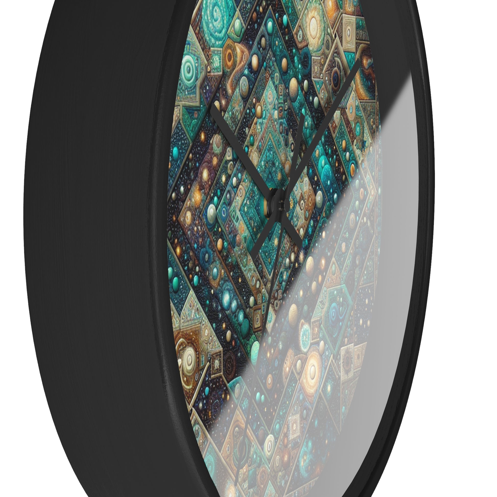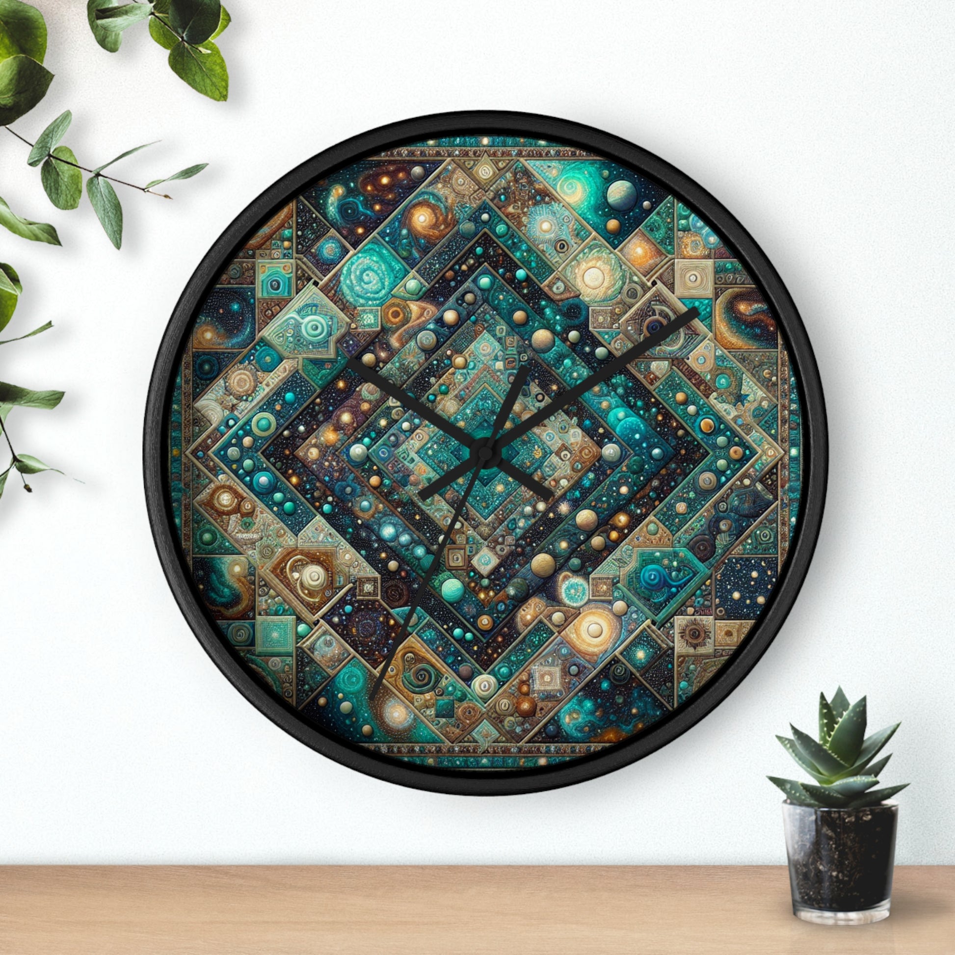 Experience the wonder of the cosmos with our Turquoise Cosmos Wall Clock. Its intricate quilted design brims with stellar details and earthy tones, seamlessly blending celestial beauty and Southwestern Chevron patterns - a timeless piece that adds depth and texture to your space. #WallClock #HomeDecor #CosmicDesign #SouthwesternStyle #Celestial #IntricatePatterns #QuiltedDesign #TimelessPiece #EarthyTones #TexturalDepth
