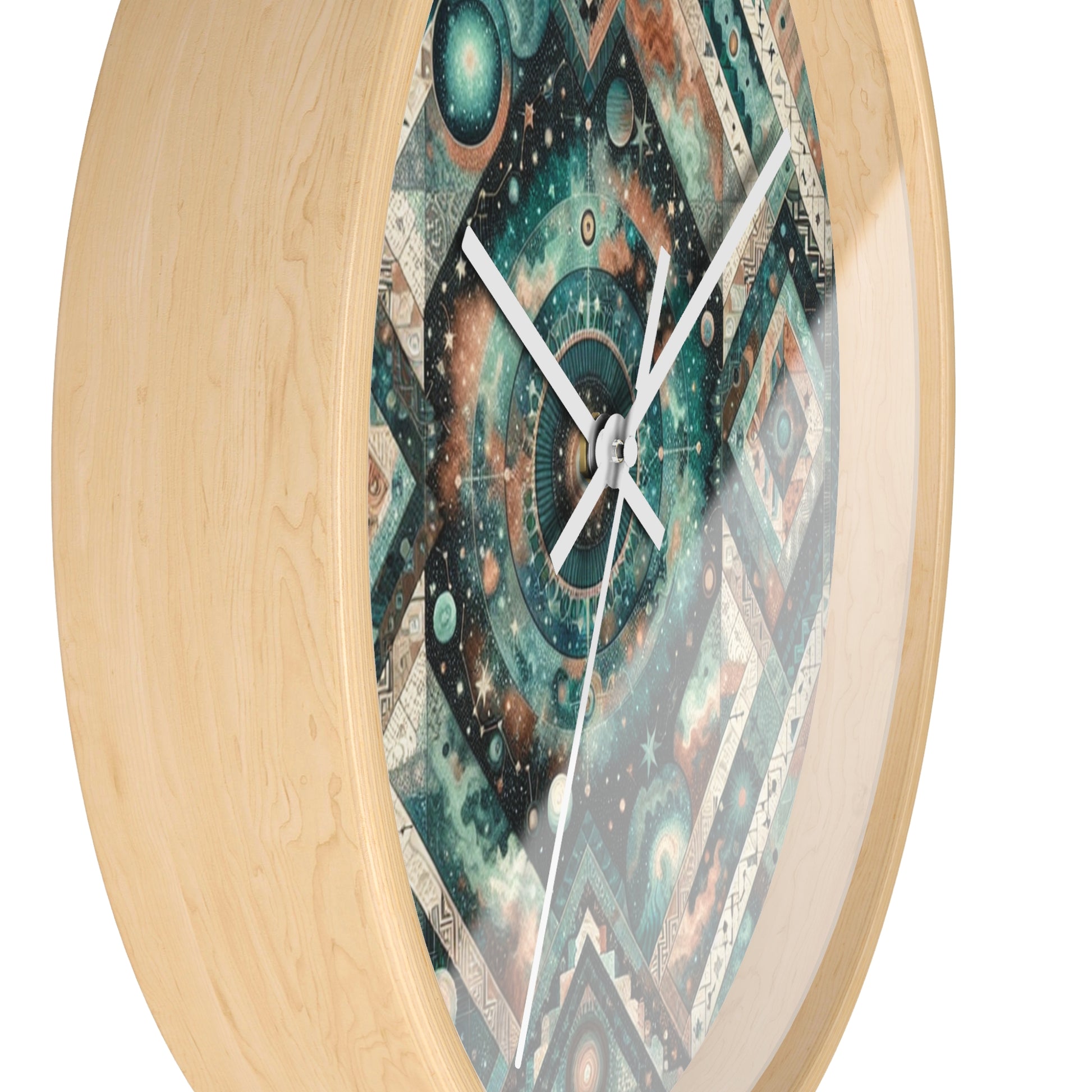 "Experience time in a whole new galaxy with this mystical Cosmic Quilt Wall Clock. Awash with vivid turquoise hues and earthy tones, this celestial timepiece brings the majesty of space right into your living room. Discover stars, galaxies, nebulae, planets, and more in the intricate design that expands across the dial. Highlighted with Southwestern-inspired Chevron patterns, this clock is an elegant fusion of aesthetic complexity and unique charm. Deck your home with cosmic beauty. #WallClock #Timepiece #CosmicArt #QuiltDesign #SouthwesternStyle #CelestialBeauty #HomeDecor #GalaxyClock #UniqueDecor #AstroLovers"