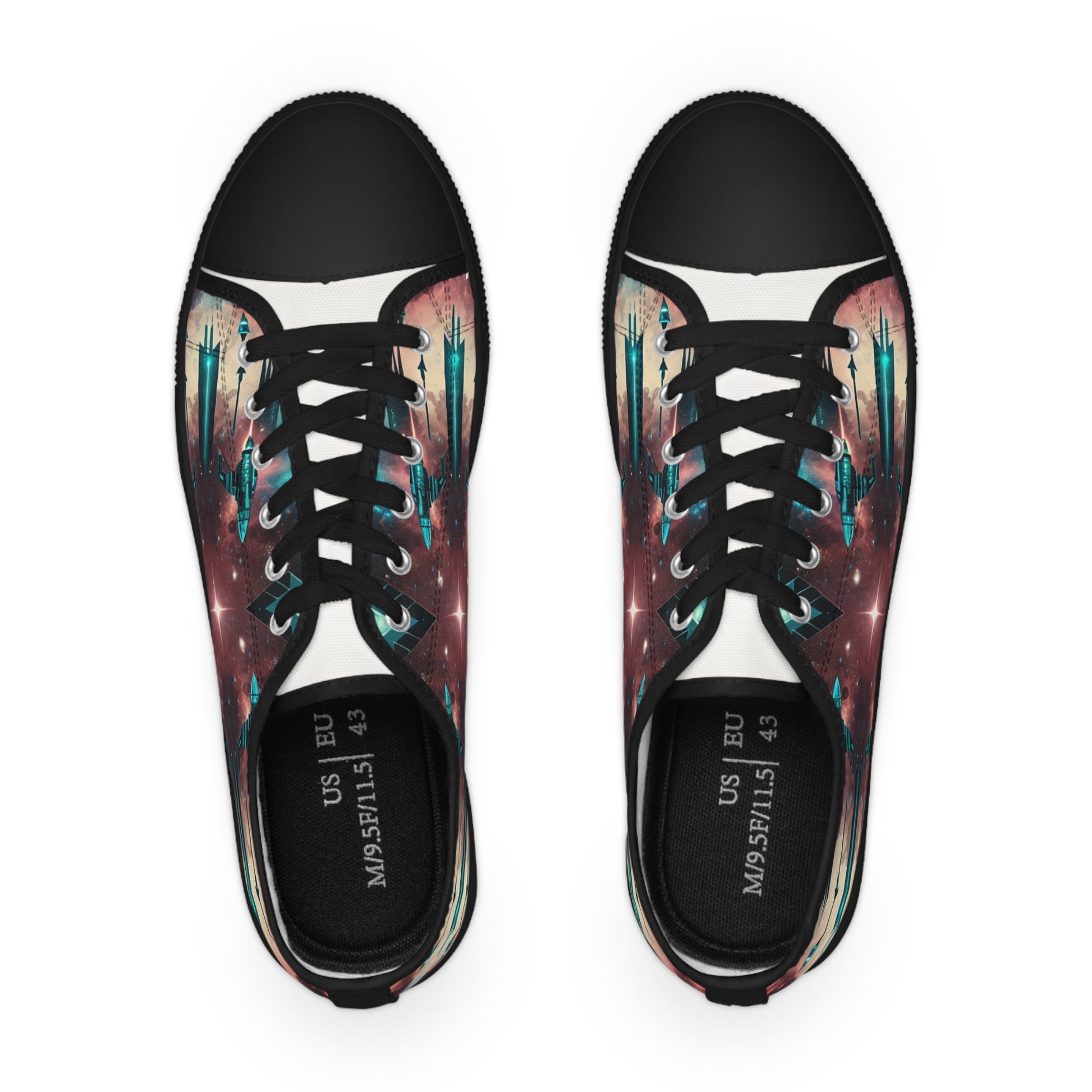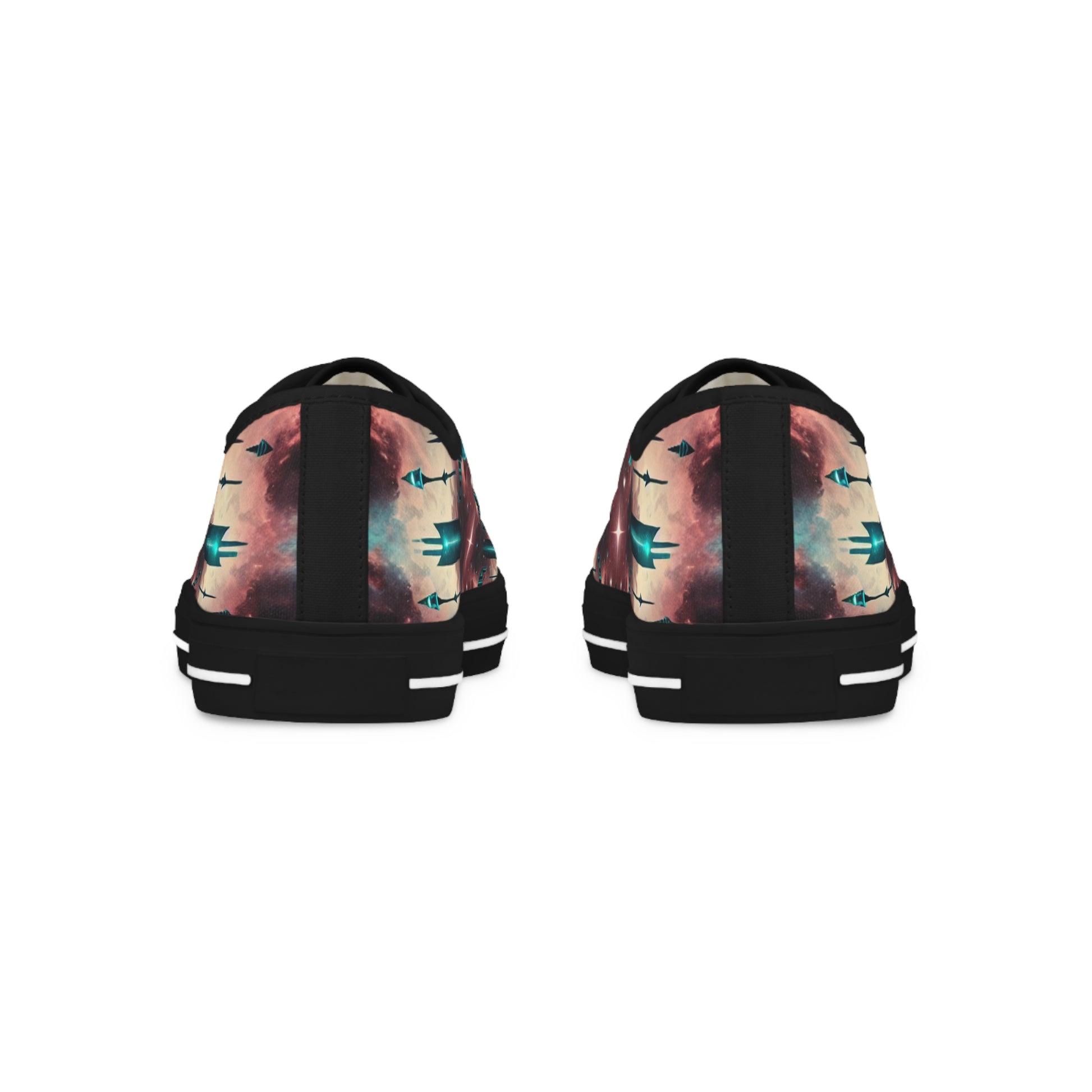 Slip into the cosmos with our Galaxy Low Top Sneakers. Adorned with a mesmerizing cosmic pattern featuring stars, galaxies, and constellations nestled in Southwestern Chevron lines, these shoes are a visual delight! Spot the turquoise spaceships along your space exploration journey. Each step feels like an intergalactic adventure. #LowTopSneakers #CosmicStyle #GalaxyFashion #ConstellationChic #SouthwesternChevron #TurquoiseSpaceships #StarStuddedShoes #IntergalacticAesthetic #SpaceExploration #StellarComfort