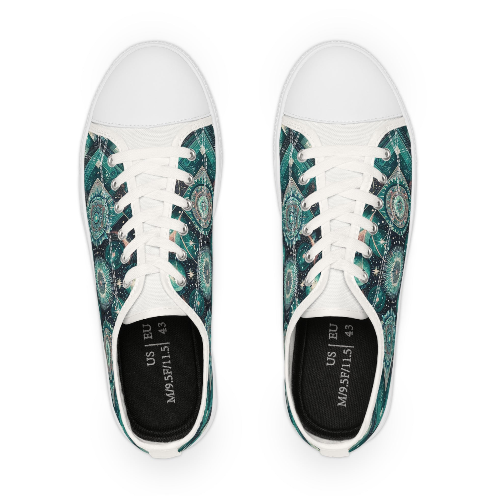 Discover our Cosmic Earth Sneakers that transport you to new galaxies. Filled with vibrant turquoise detailing, these low-tops feature a celestial design with stars, nebulae and planets, intermingled with southwestern chevron lines. Indulge in the earthy, abstract themes and quilt-like texture. A sneaker that's a true testament to innovation and style. #CosmicSneakers #ChevronDesign #GalacticStyle #SouthWesternAccents #AbstractFashion #EarthyAppeal #CelestialFootwear #StellarFashion #NebulaeShoes #QuiltLikeTexture.