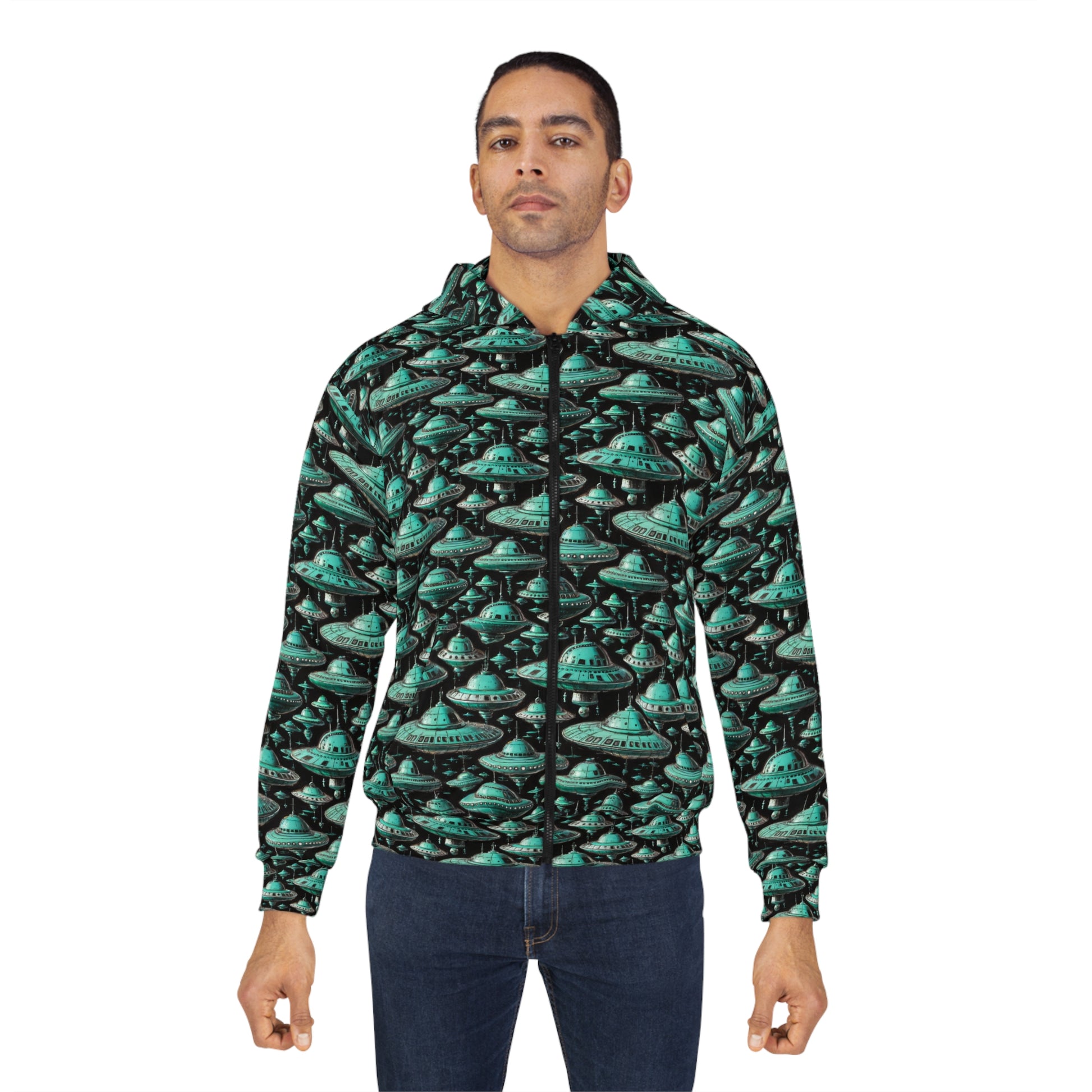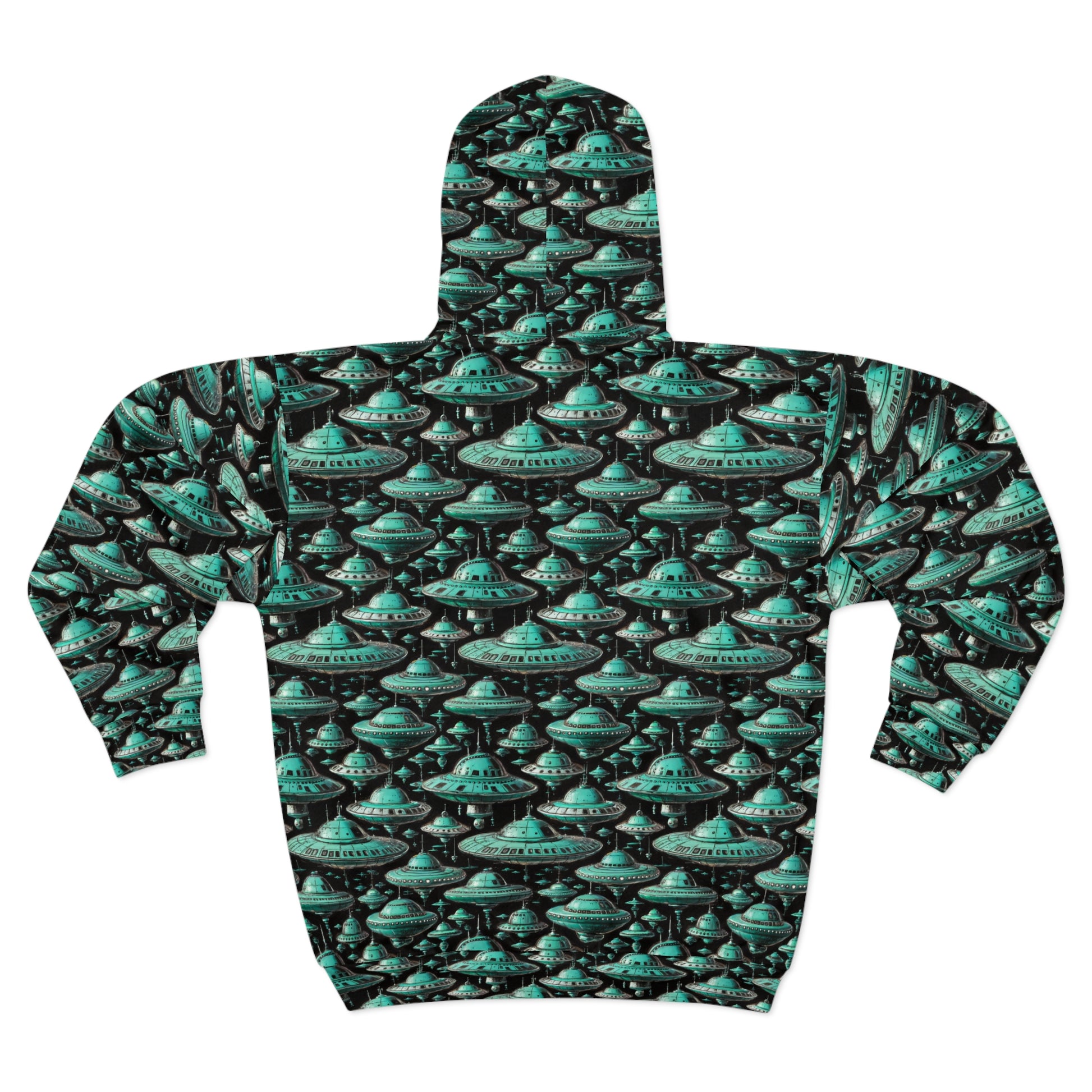 Turquoise UFO Unisex Zip Hoodie – Perfect for Sci-Fi Lovers & Casual Style