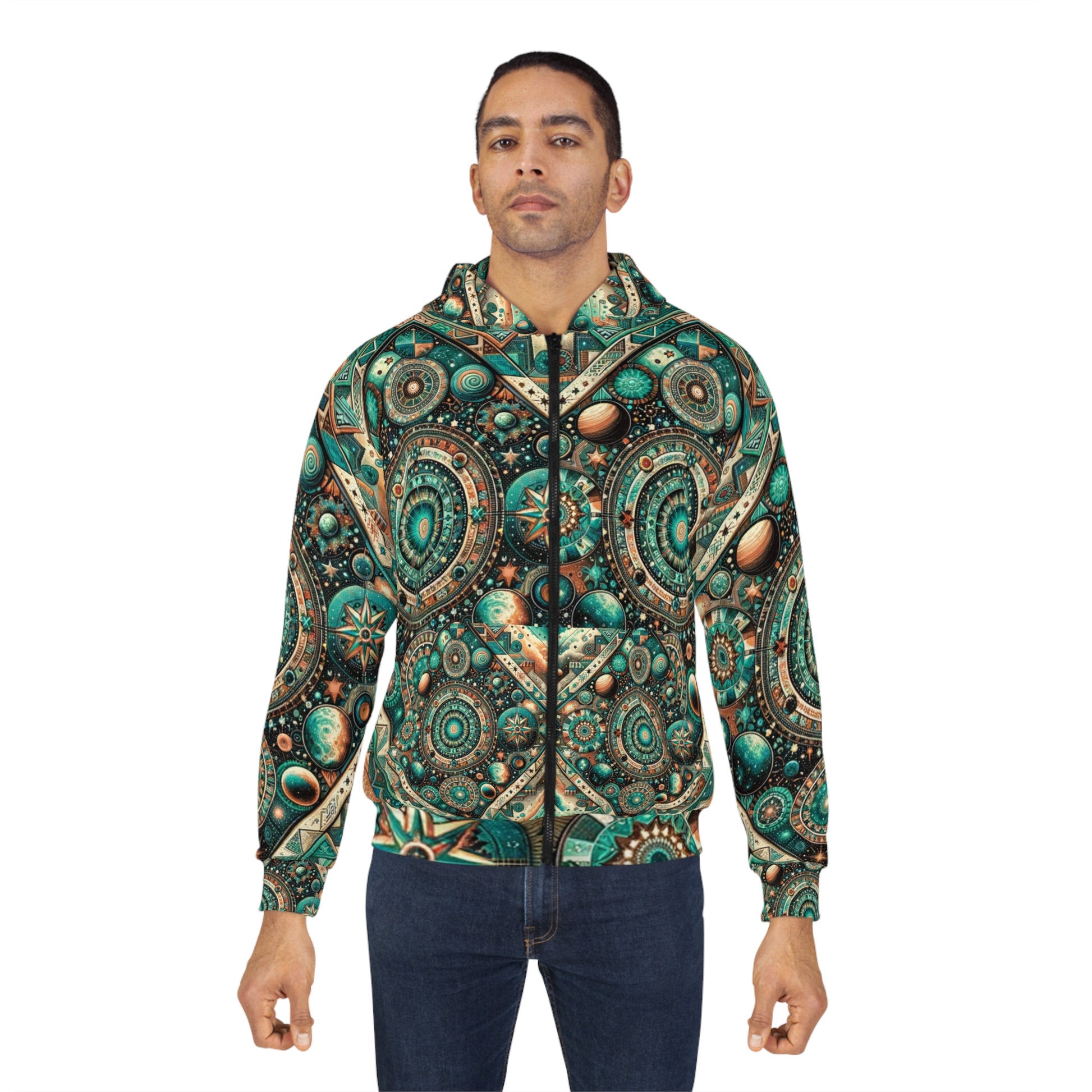 "Embrace the cosmos with our Cosmic Quilt Hoodie. Decorated with celestial stars, swirling galaxies, and a kaleidoscope of nebulae and planets, it’s a universe of style in vibrant turquoise and earthy hues. Tied together with Southwestern Chevron patterns, this intricate design offers an immersive, awe-inspiring experience. #CosmicHoodie #CelestialStyle #GalaxyFashion #QuiltedHoodie #QuiltPattern #SouthwesternChevron #Nebulae #FashionGalaxy #Planets #QuiltedCosmos"