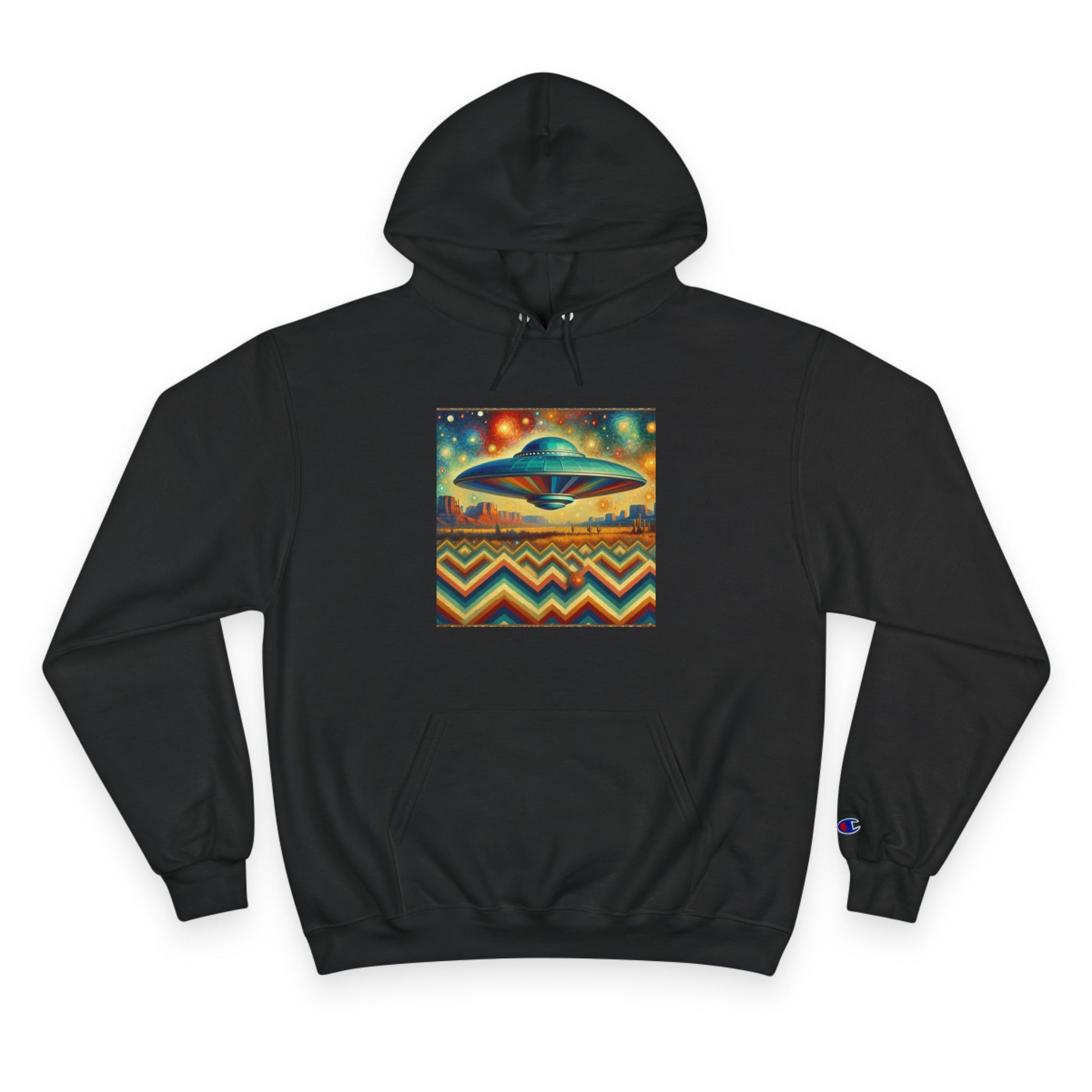 Indulge in cosmic chic with this mesmerizing hoodie. Dazzling in turquoise, it flaunts a vintage flying saucer amidst a Southwestern-style pattern of mustard yellow and coral red. Boundless aesthetic appeal with hints of impressionistic art, beautifully enhanced with nebulae, stars and additional saucers. Complemented by abstract chevron patterns for harmony. #CosmicChic #VintageHoodie #SouthwesternStyle #MustardYellow #CoralRed #ImpressionisticArt #NebulaeStars #FlyingSaucer #AbstractChevron #MesmerizingTurquoise.