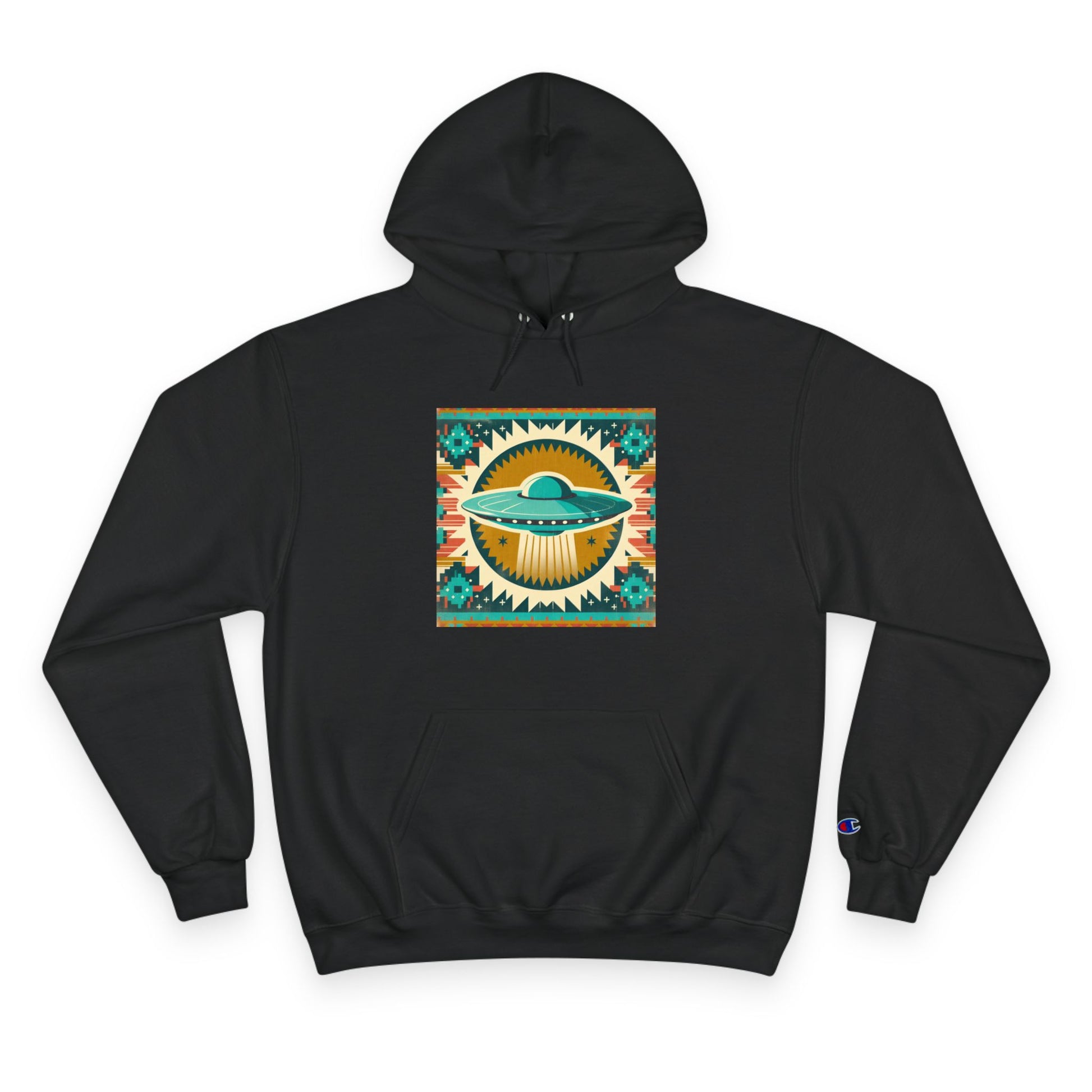 Introducing our latest Cosmic Space Hoodie, donning a vintage Turquoise UFO, unmistakably hovering over a Southwestern Style pattern in vibrant shades of Mustard Yellow and Coral Red. Every inch of our canvas takes you on an interstellar journey, with chevron-patterned nebulas and stars gracing the backdrop. Witness a captivating harmony of aesthetics, resonating the boundless beauty of the cosmos and igniting an impressionistic hint. Let your style speak extraterrestrial. #CosmicHoodie #TurquoiseUFO #SouthwesternStyle #MustardYellow #CoralRed #InterstellarJourney #ChevronNebulas #StarPatterns #ImpressionisticStyle #ExtraterrestrialFashion.