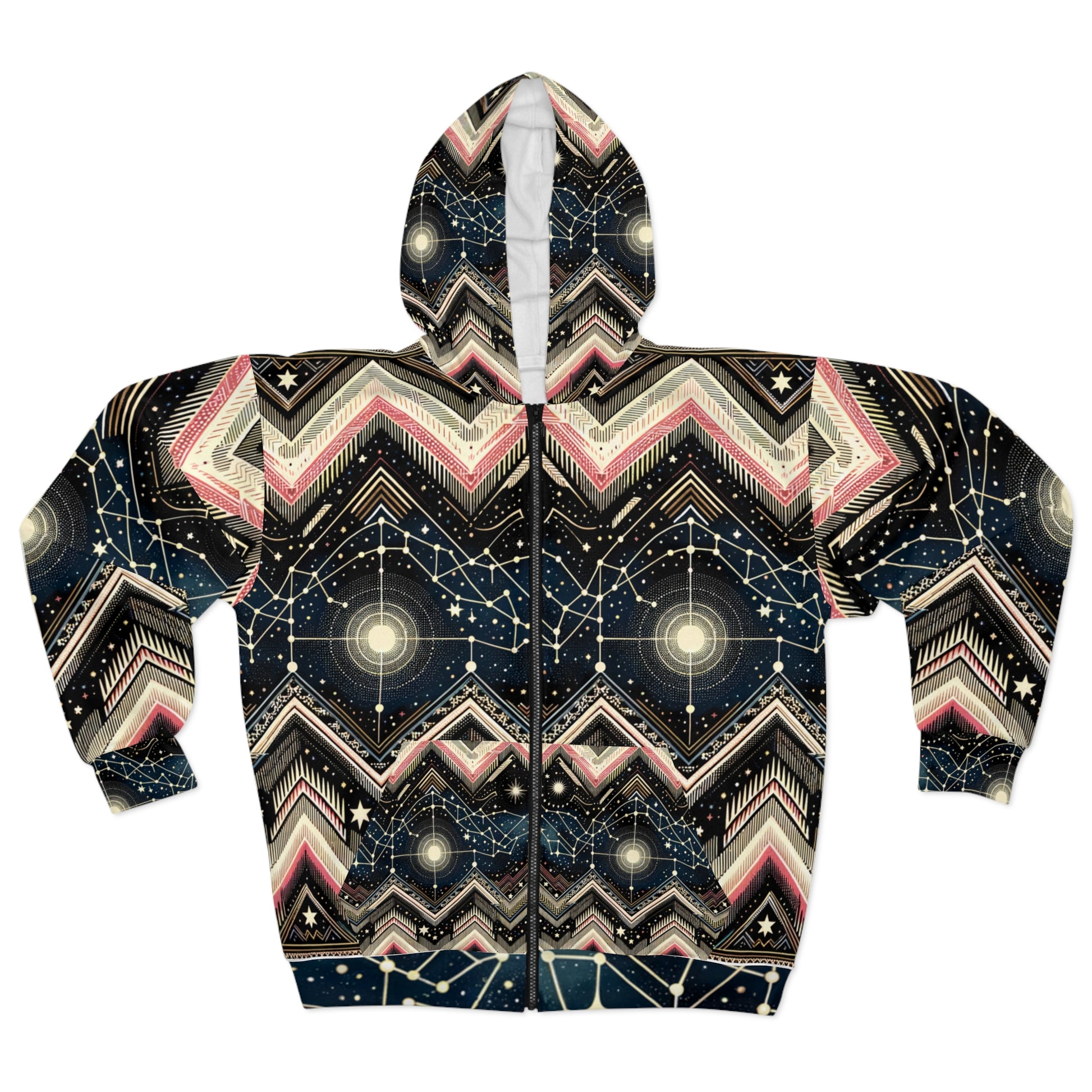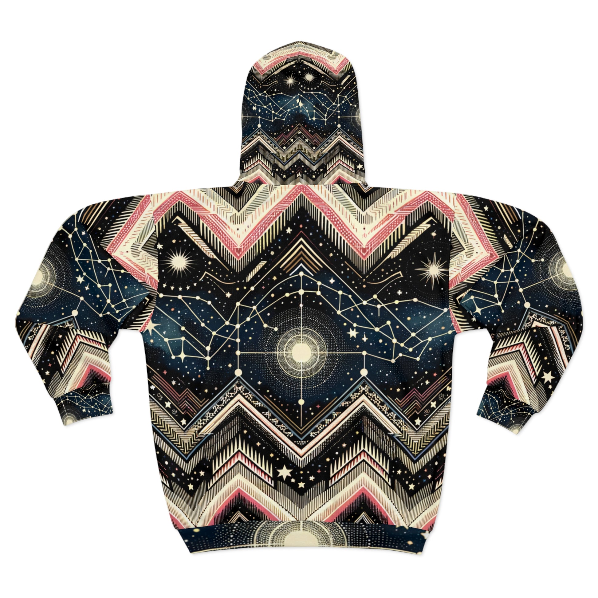#CosmicHoodie #SouthwesternChevron #StarryDesign #GalaxyWear #SpaceFashion #UrbanStyle #Streetwear #StarGazer #CasualAstronomy #ComfortMeetsStyle