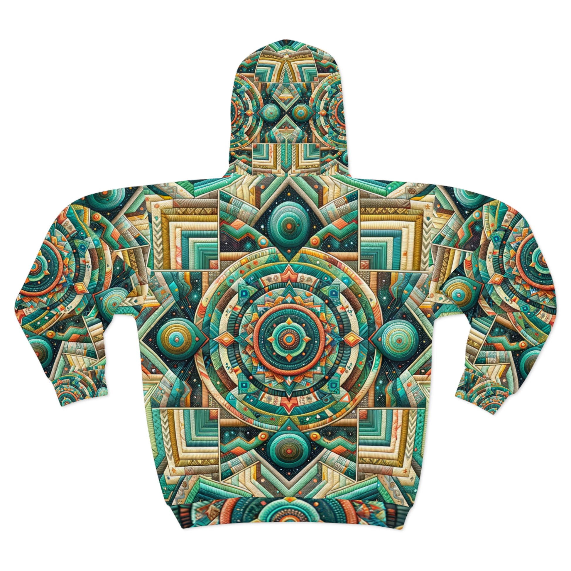 Experience terrestrial meets extraterrestrial in our Southwest Kaleidoscopic Hoodie. Dressed in turquoise UFO designs, celestial stars and galaxies, it echoes a cosmic vibe. A balanced pop of mustard yellow and coral red complements the captivating display. #CosmicHoodie #SouthwestStyle #KaleidoscopePattern #UFOdesign #StarryFashion #GalaxyWear #CelestialStyle #VibrantHoodie #MustardYellow #CoralRed